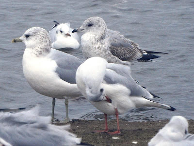 | Common Gull 1st Winter at back,foreground BH Gulls |