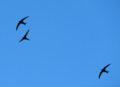 A cloudy morning just 7°C at Yeadon Tarn where it was good to get my first Swifts of the year with eight flying around. Over the water there were Swallows and Sand Martins, and walking around there was Blackcap, Whitethroat, Willow Warbler and Chiffchaff. A pair of Canadas had a young gosling and Mallards had chicks, others were Mute Swan, Cormorant, Tufteds, Moorhen & Coots.